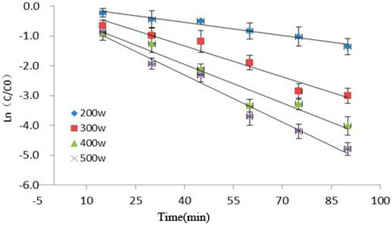 Correlation between clearance rate of ·OH and ultrasonic power and treatment time (n = 3).