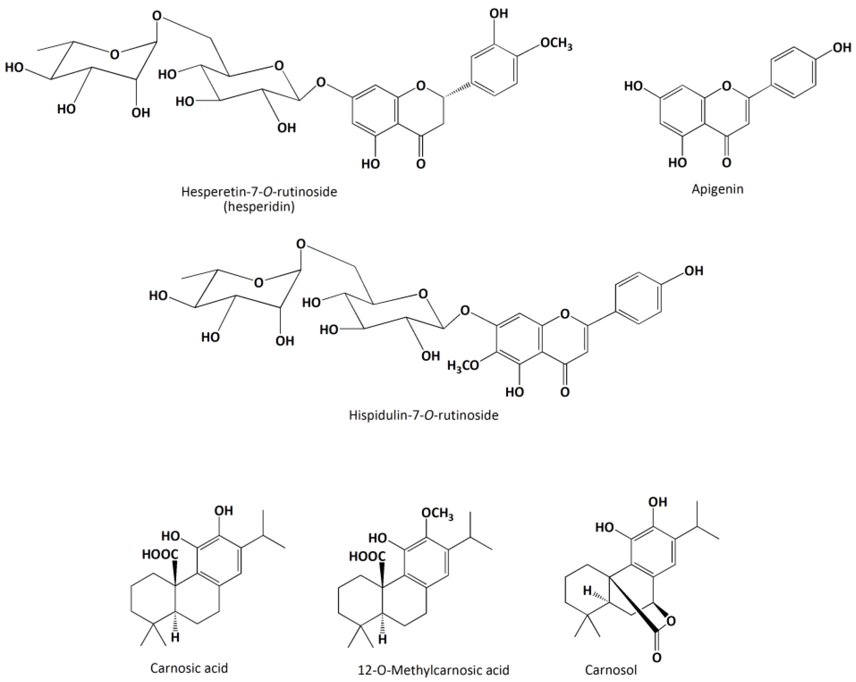 Some of the (poly)phenolic compounds present in the rosemary extract.