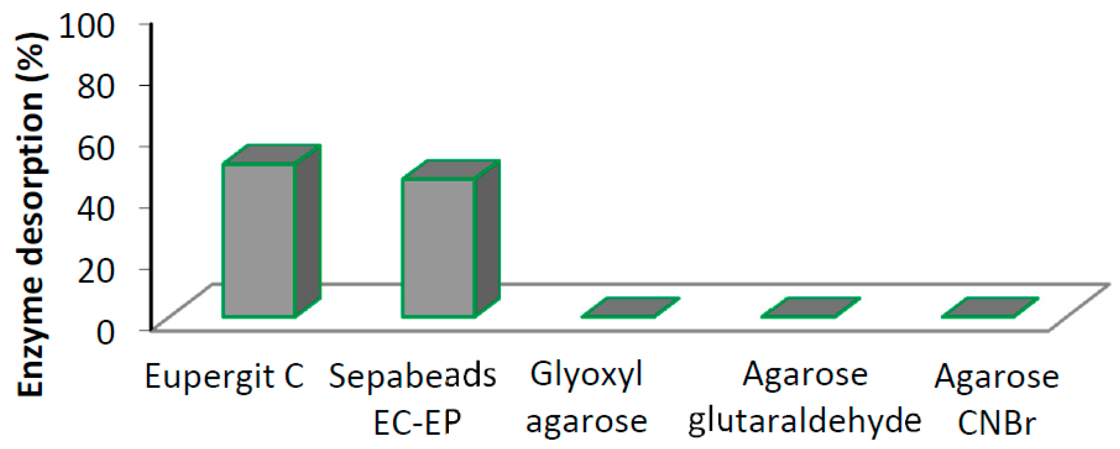 3.5. Evaluation of the Attachment between the Enzyme and the Support