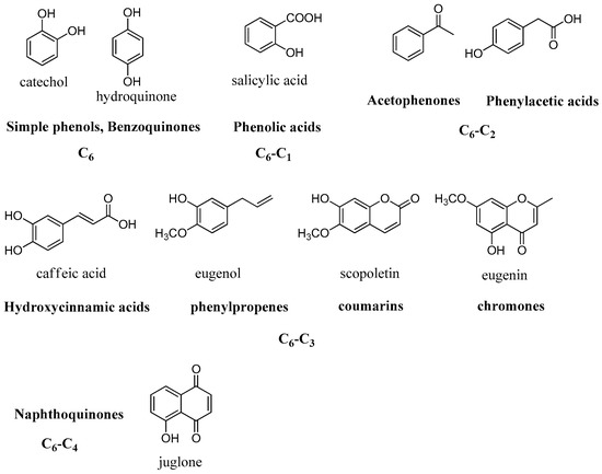 Main examples of phenols according to the classification of Harborne [32].