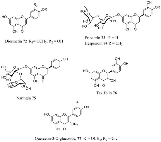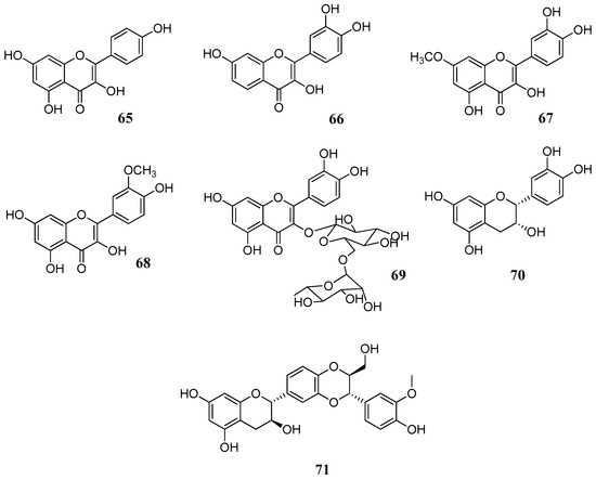 Structures of compounds 65–71 [46,67].