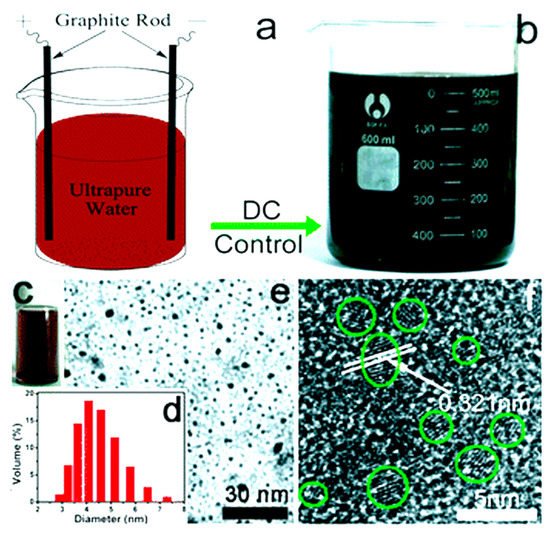 - Ming, H.; Ma, Z.; Liu, Y.; Pan, K.; Yu, H.; Wang, F.; Kang, Z. Large scale electrochemical synthesis of high quality carbon nanodots and their photocatalytic property. Dalton Trans. 2012, 41, 9526–9531. [Google Scholar] [CrossRef] [PubMed]