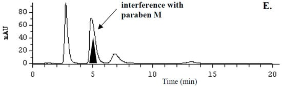 The sample preparation procedure was not complicated in the case of tablets. It proceeded in a standard way. The representative chromatogram is presented in Figure 1C. The procedure, however, is completely different in the case of the samples of liquid dosage forms.