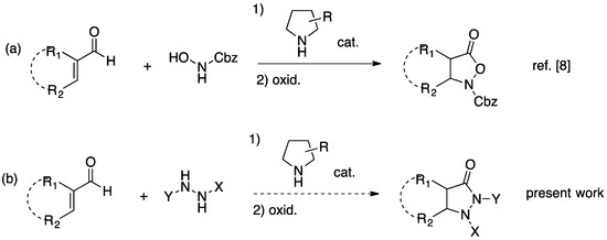 2.1. Organocatalytic Synthesis of 4-Substituted Pyrazolidinones and Isoxazolidinones