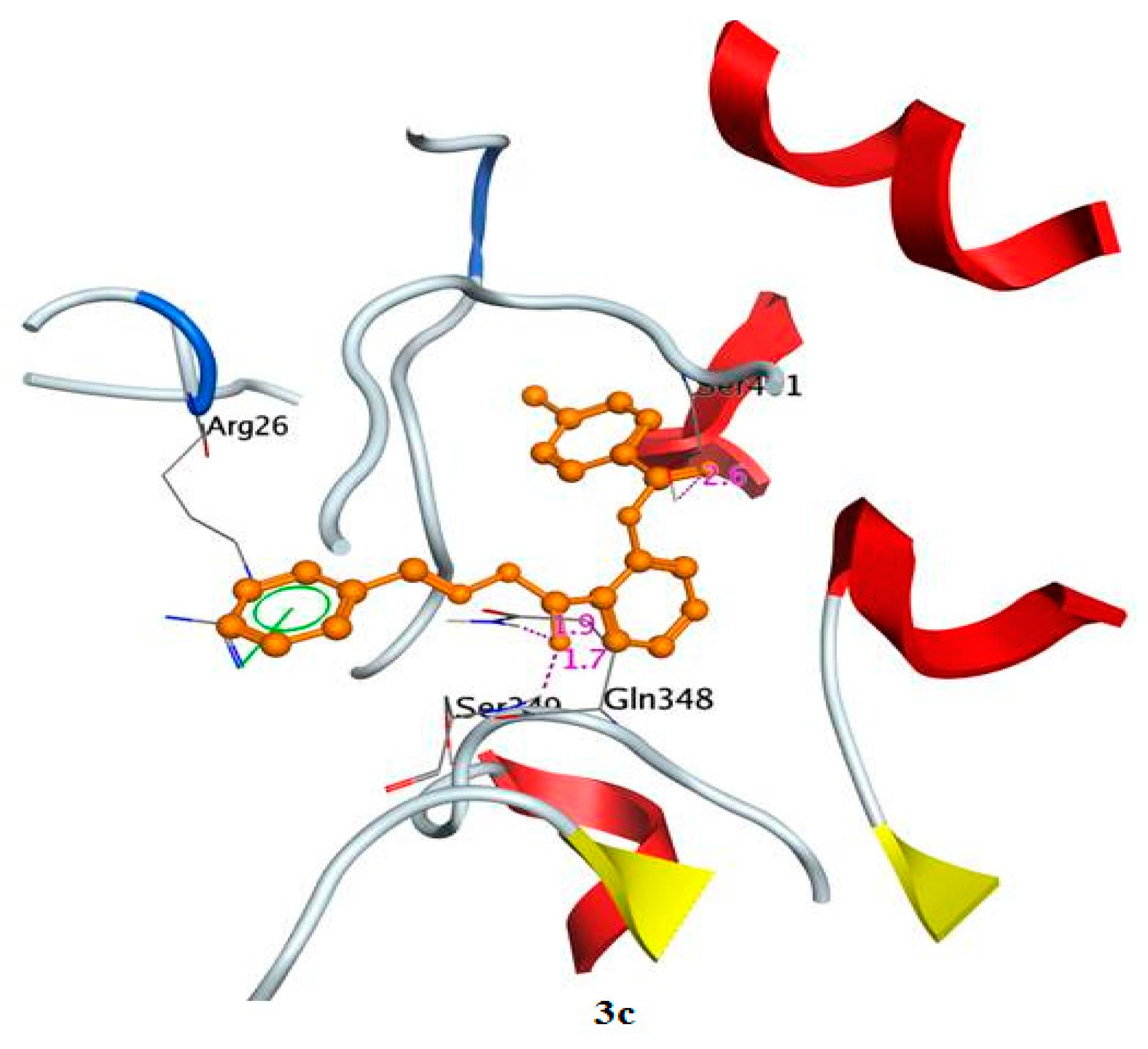 2.3.2. Docking Simulations for Compounds 6a–o in Active Site of Proteinase K