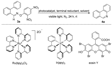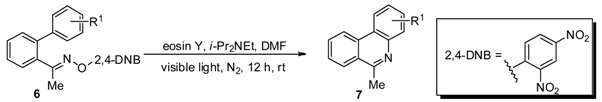 Chicago/Turabian StyleLiu, Xiubin, Zhixing Qing, Pi Cheng, Xinyu Zheng, Jianguo Zeng, and Hongqi Xie. 2016. "Metal-Free Photoredox Catalyzed Cyclization of O-(2,4-Dinitrophenyl)oximes to Phenanthridines" Molecules 21, no. 12: 1690. https://doi.org/10.3390/molecules21121690