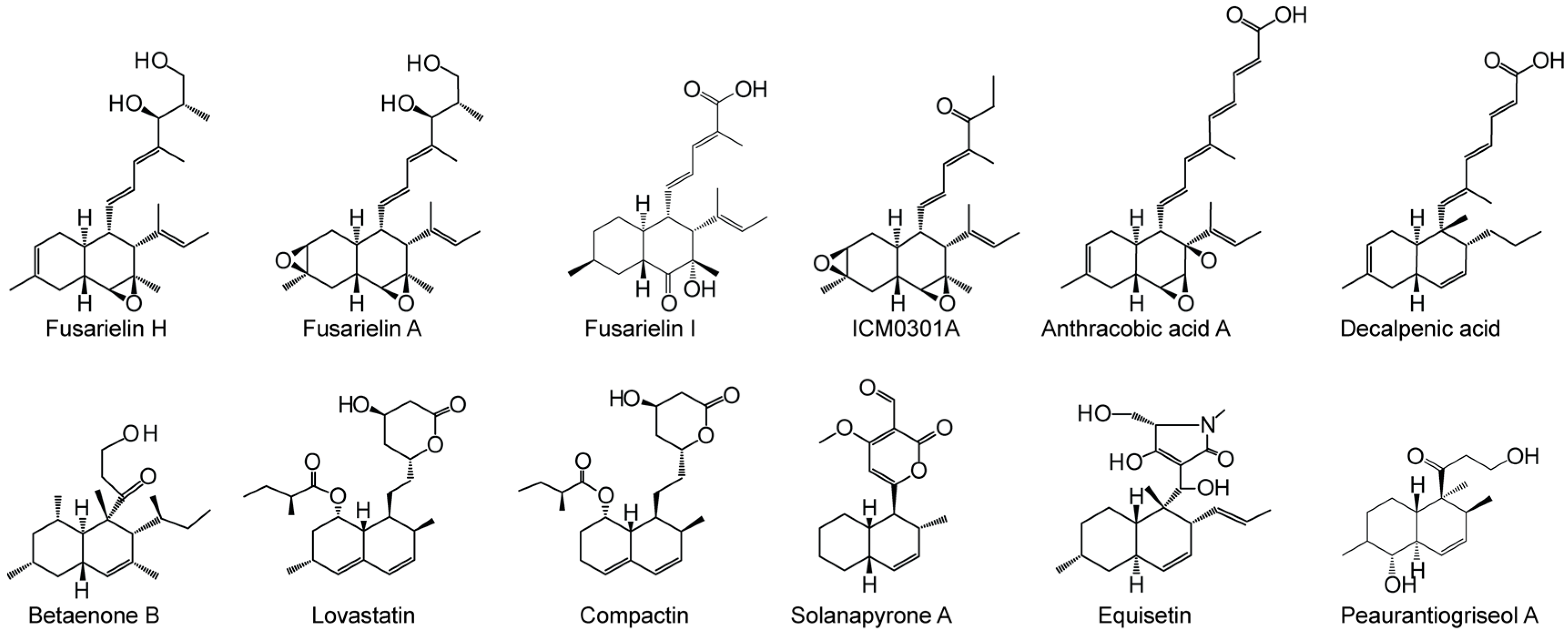 - Li, G.; Kusari, S.; Spiteller, M. Natural products containing ‘decalin’ motif in microorganisms. Nat. Prod. Rep. 2014, 31, 1175–1201. [Google Scholar] [CrossRef] [PubMed]