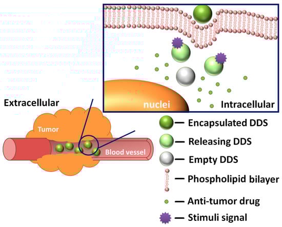 - Biodegradation problems. After the drug release process, the biodegradation of the DDS becomes an additional problem. As foreign substances can induce an immune response, probably disturbing the anti-tumor drug mechanism. For an ideal, biodegradable DDS, the carrier subject should remain intact. The disassembly process should not take place until the beginning or end of the release behavior. The degraded substances should meet all bio-safety standards and can be easily discharged through metabolism.