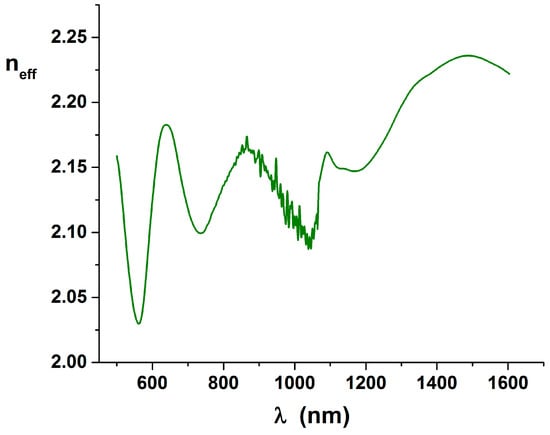 Plot of the neff curve, derived from the set visible in Figure 5 and correspondent to the previously shown reflectance curve.