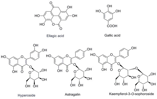 - Sample Availability: Samples of the compounds GA, EA hyperoside, astragalin and Kaempferol-3-O-sophoroside are available from the authors.