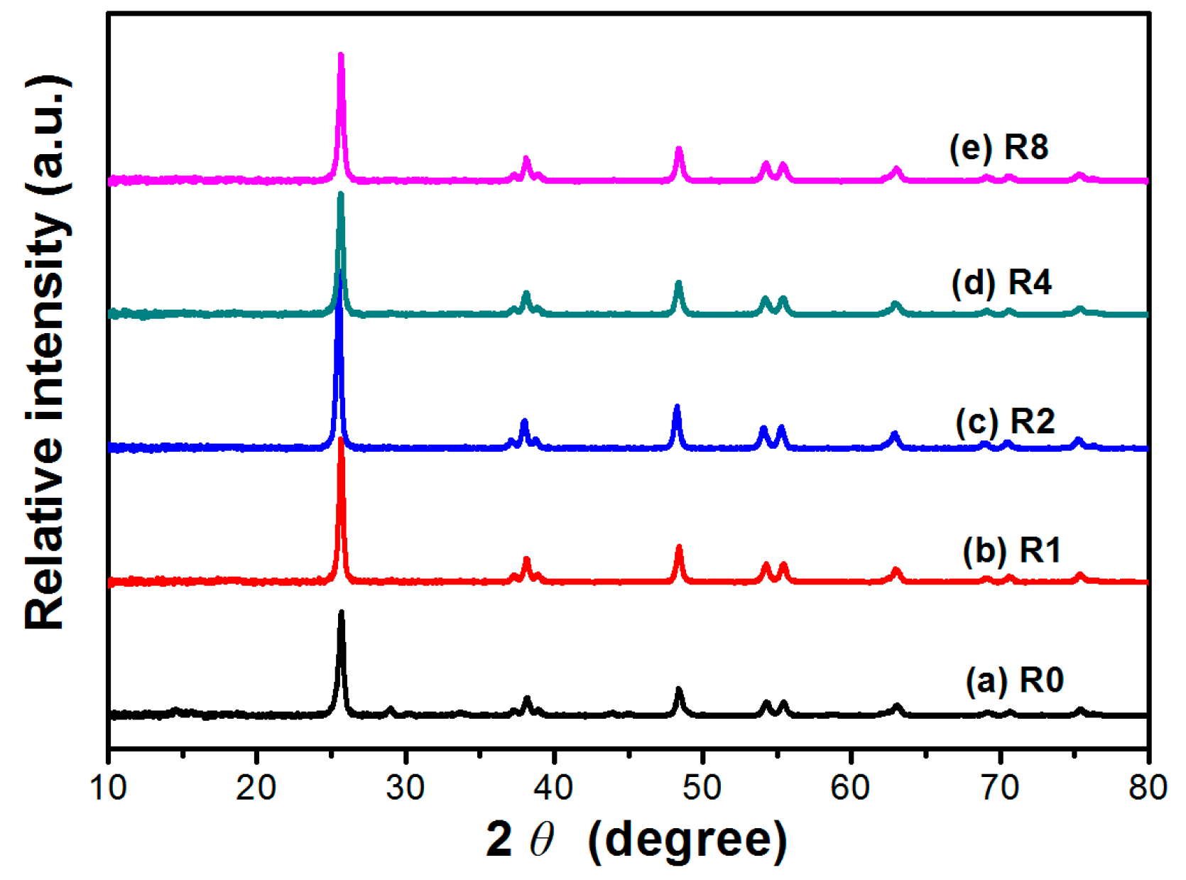 a Weight ratio of thiourea to TiO2 before calcination; b Relative crystallinity: the relative intensity of the diffraction peak from the anatase (101) plane (R0 is used as reference).