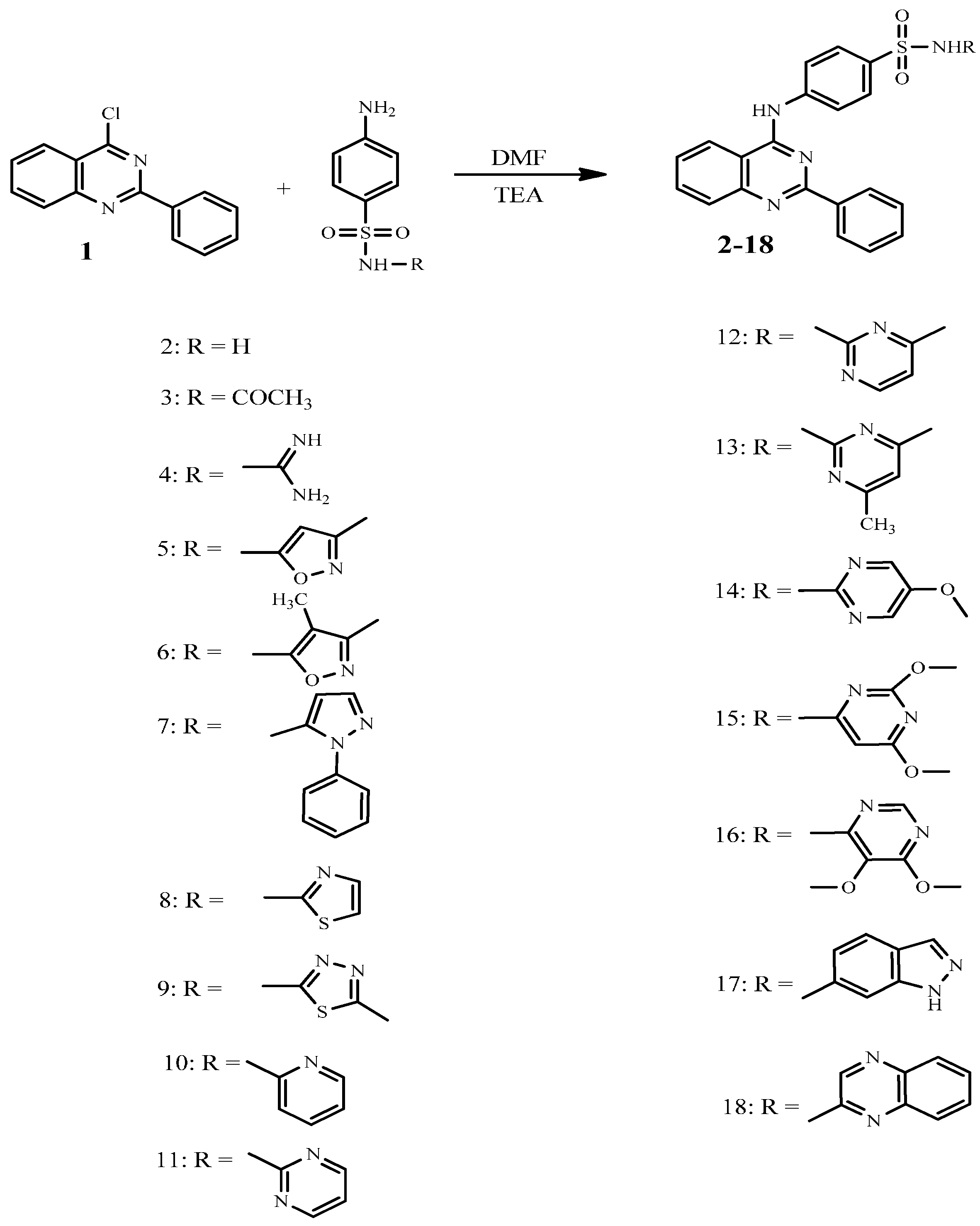 3.2. General Procedure for the Synthesis of Sulfonamide Derivatives 2–18