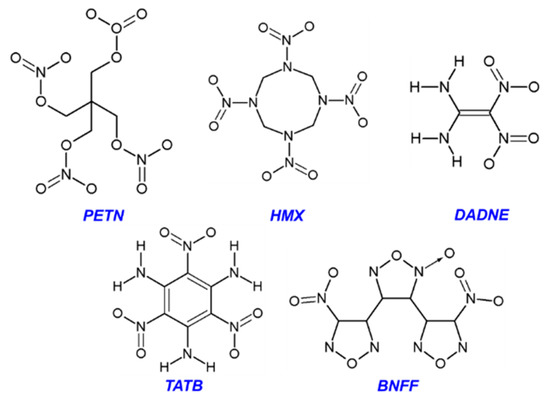 - Yan, Q.L.; Zeman, S. Theoretical evaluation of sensitivity and thermal stability for high explosives based on quantum chemistry methods: A brief review. Int. J. Quant. Chem. 2013, 113, 1049–1061. [Google Scholar] [CrossRef]