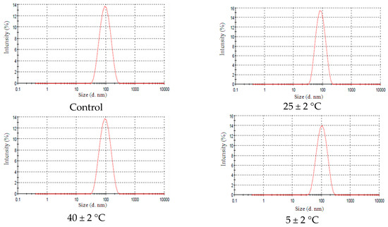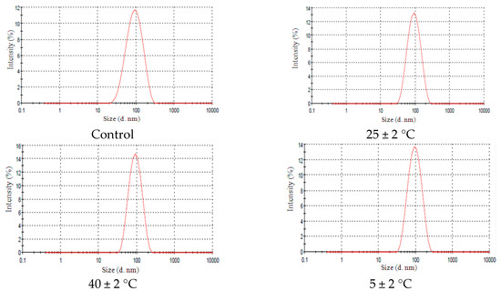 The thermal stress test results are presented in Table 3. We can observe that all nanoemulsion formulations were stable at 50 °C and changed little until 80 °C, while that numbered 4 remained stable until 80 °C.