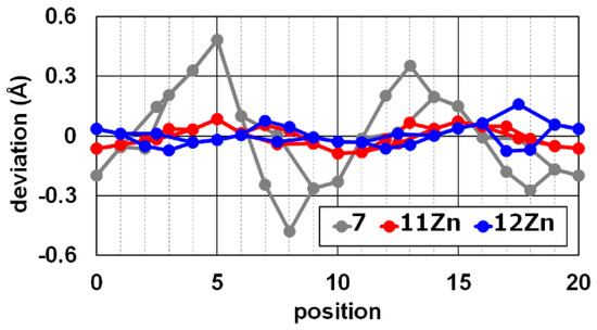 Mean plane deviation diagrams of 7 [5], 11Zn, and 12Zn.