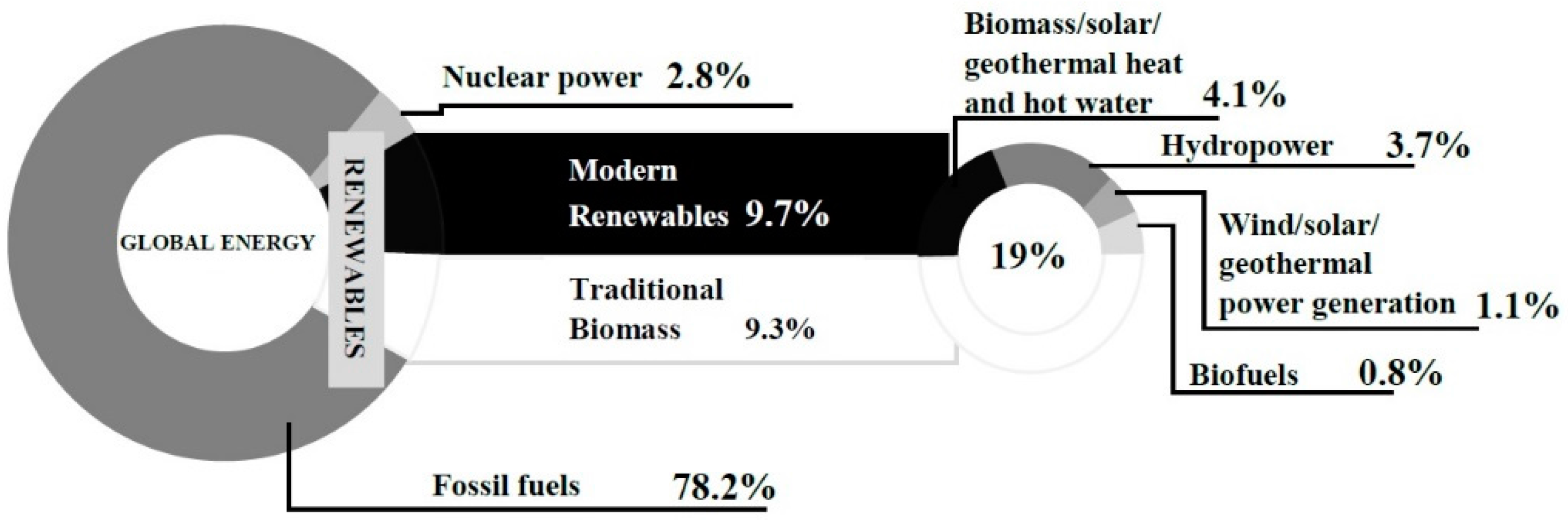 Figure 1. Estimated renewable energy share of global final energy consumption in 2011. Source: [2].