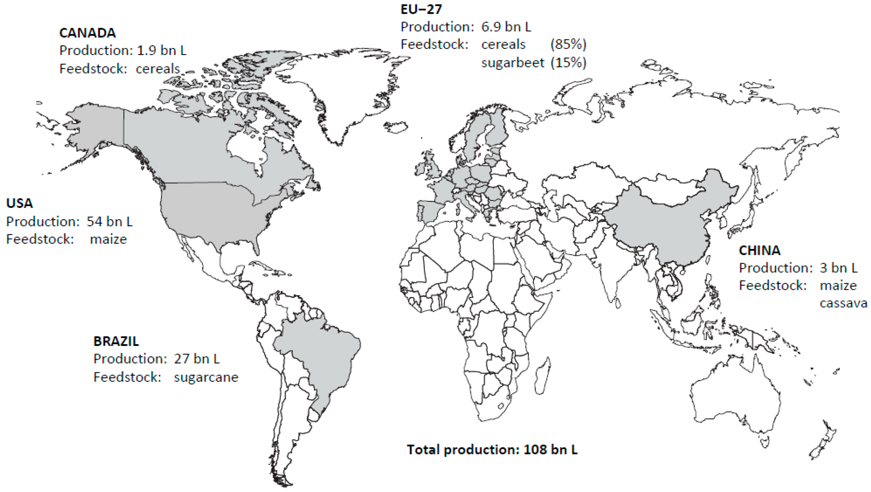 Figure 2. Word fuel ethanol production, average 2012–2014 [5].