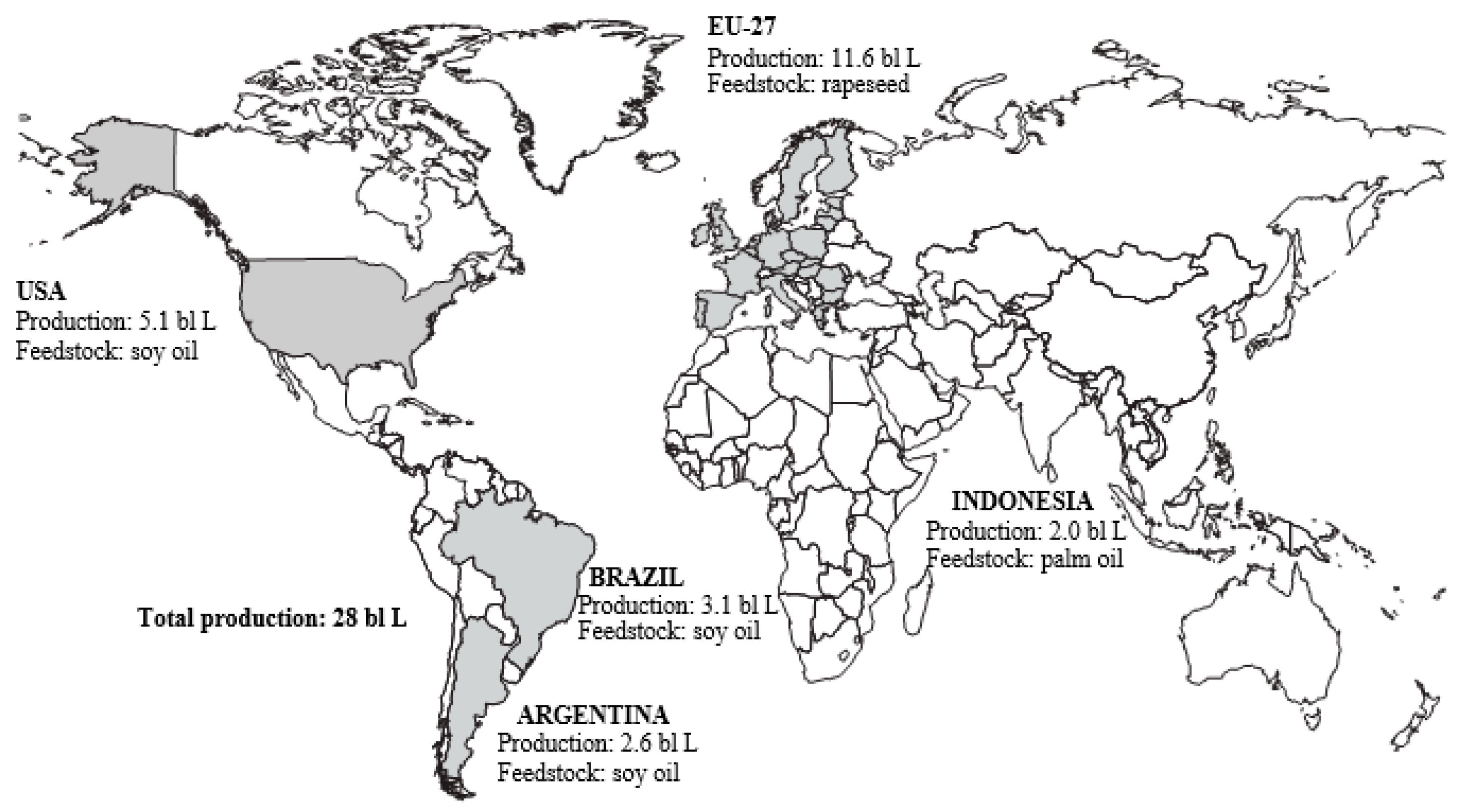 Figure 3. Word biodiesel production, average 2012–2014 [5].
