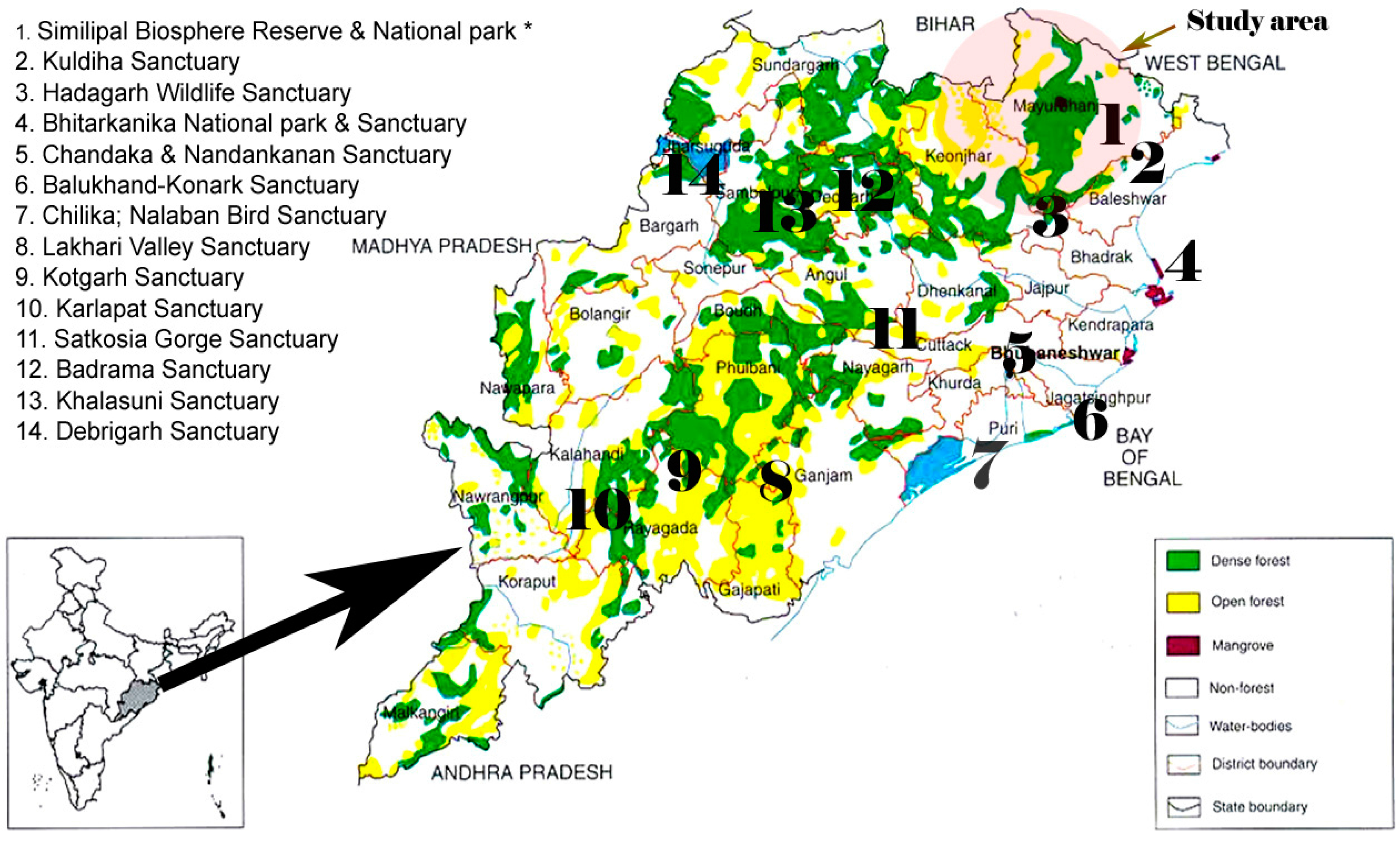 - Panda, S.K. Ethno-medicinal uses and screening of plants for antibacterial activity from Similipal Biosphere Reserve, Odisha, India. J. Ethnopharmacol. 2014, 151, 158–175. [Google Scholar] [CrossRef] [PubMed]
