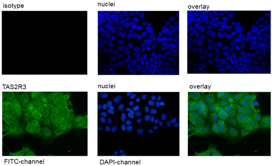 It could be demonstrated that the placental JEG-cells expressed TAS2R38. No fluorescence signal was detectable with an isotype control antibody (Figure 2).