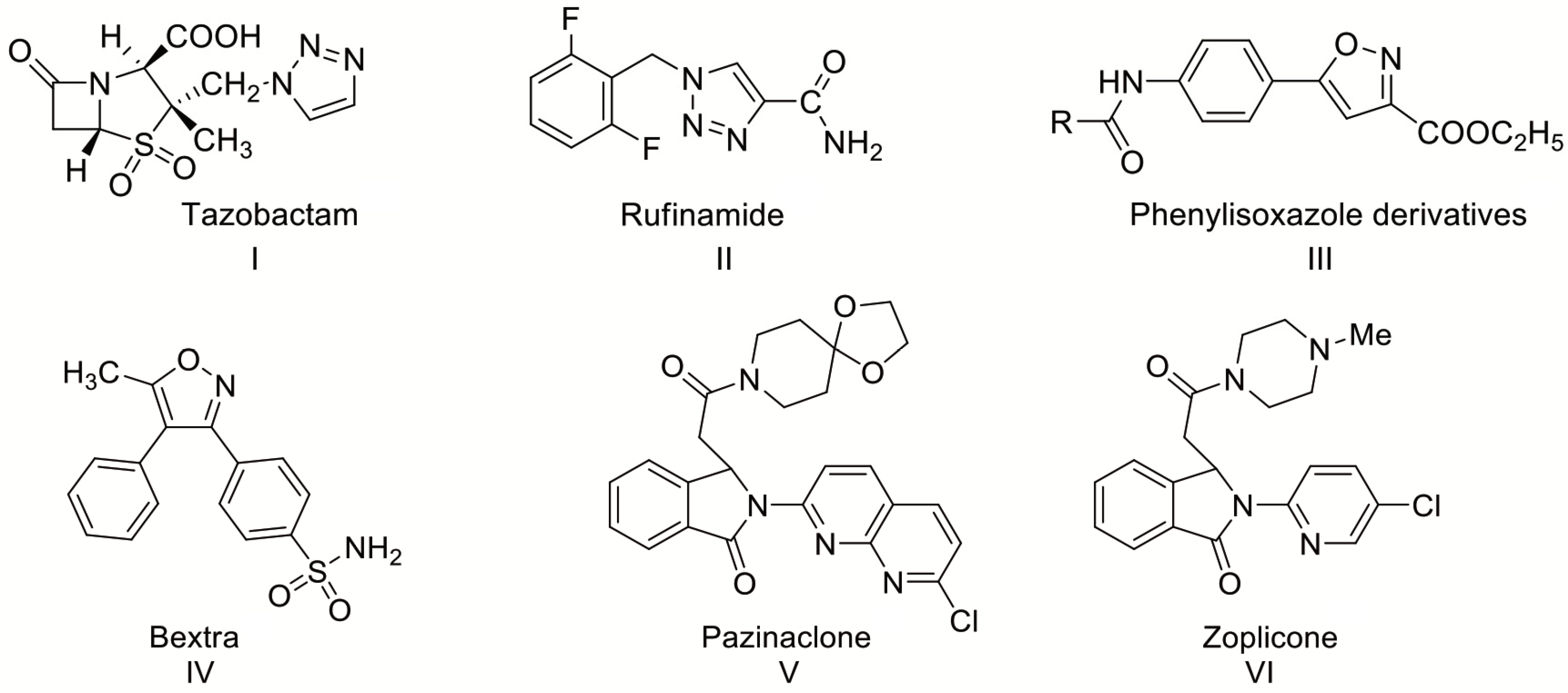 - Bonacorso, H.G.; Maraes, M.C.; Luz, F.M.; Quintana, P.S.; Zarrata, N.; Martins, M.A.P. New solventless and metal-free synthesis of the antiepileptic drug 1-(2,6-difluorobenzyl)-1H-1,2,3-triazole-4-carboxamide (Rufinamide) and analogues. Tetrahedron Lett. 2015, 56, 441–444. [Google Scholar] [CrossRef]