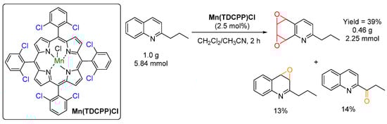 The epoxidation of alkenes is one of the processes of great importance in the fine chemical industry from an economic point of view, because epoxides are useful intermediates in the production and manufacture of high–value commercial polymers like polyurethane, polyamides, resins, and polyesters [31]. In addition, this transformation is used to carry out bioinspired oxidations [32] to produce drug candidates or metabolites (Scheme 3).