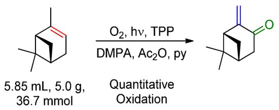 - Bourne, R.A.; Han, X.; Poliakoff, M.; George, M.W. Cleaner continuous photo-oxidation using singlet oxygen in supercritical carbon dioxide. Angew. Chem. Int. Ed. 2009, 48, 5322–5325. [Google Scholar] [CrossRef] [PubMed]