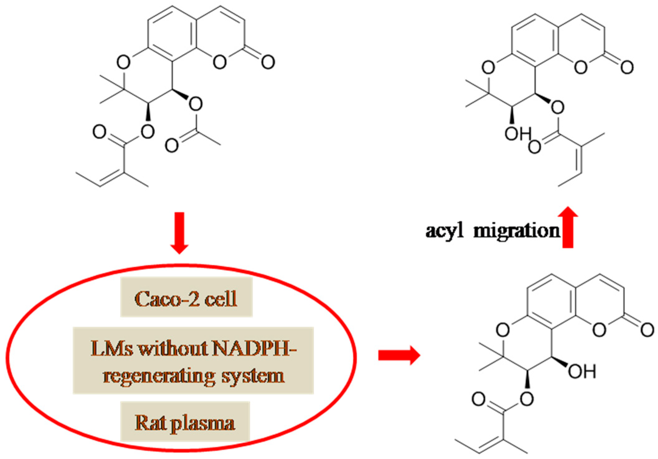 - Jing, W.H.; Song, Y.L.; Yan, R.; Bi, H.C.; Li, P.T.; Wang, Y.T. Transport and metabolism of (+/−)-praeruptorin A in Caco-2 cell monolayers. Xenobiotica 2011, 41, 71–81. [Google Scholar] [CrossRef] [PubMed]