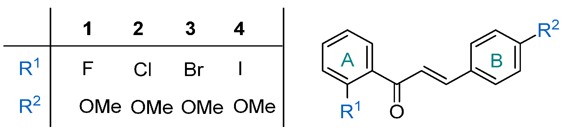 - Batovska, D.I.; Todorova, I.T. Trends in utilization of the pharmacological potential of chalcones. Curr. Clin. Pharmacol. 2010, 5, 1–29. [Google Scholar] [CrossRef] [PubMed]