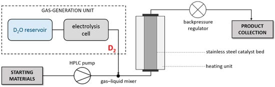 - Mándity, I.M.; Martinek, T.A.; Darvas, F.; Fülöp, F. A simple, efficient, and selective deuteration via a flow chemistry approach. Tetrahedron Lett. 2009, 50, 4372–4374. [Google Scholar] [CrossRef]