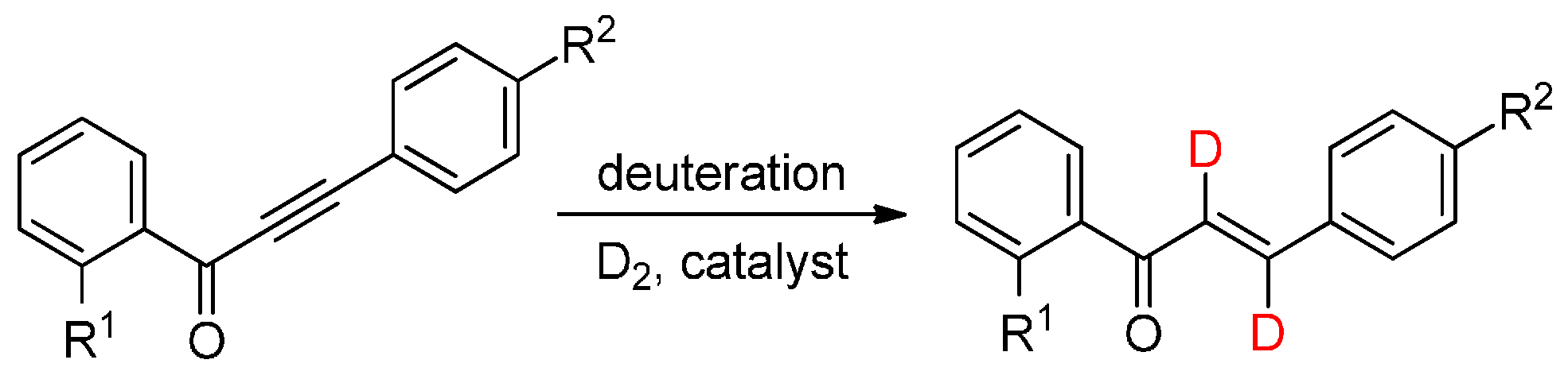 - Hsieh, C.-T.; Ötvös, S.B.; Wu, Y.-C.; Mándity, I.M.; Chang, F.-R.; Fülöp, F. Highly selective continuous-flow synthesis of potentially bioactive deuterated chalcone derivatives. ChemPlusChem 2015, 80, 859–864. [Google Scholar] [CrossRef]