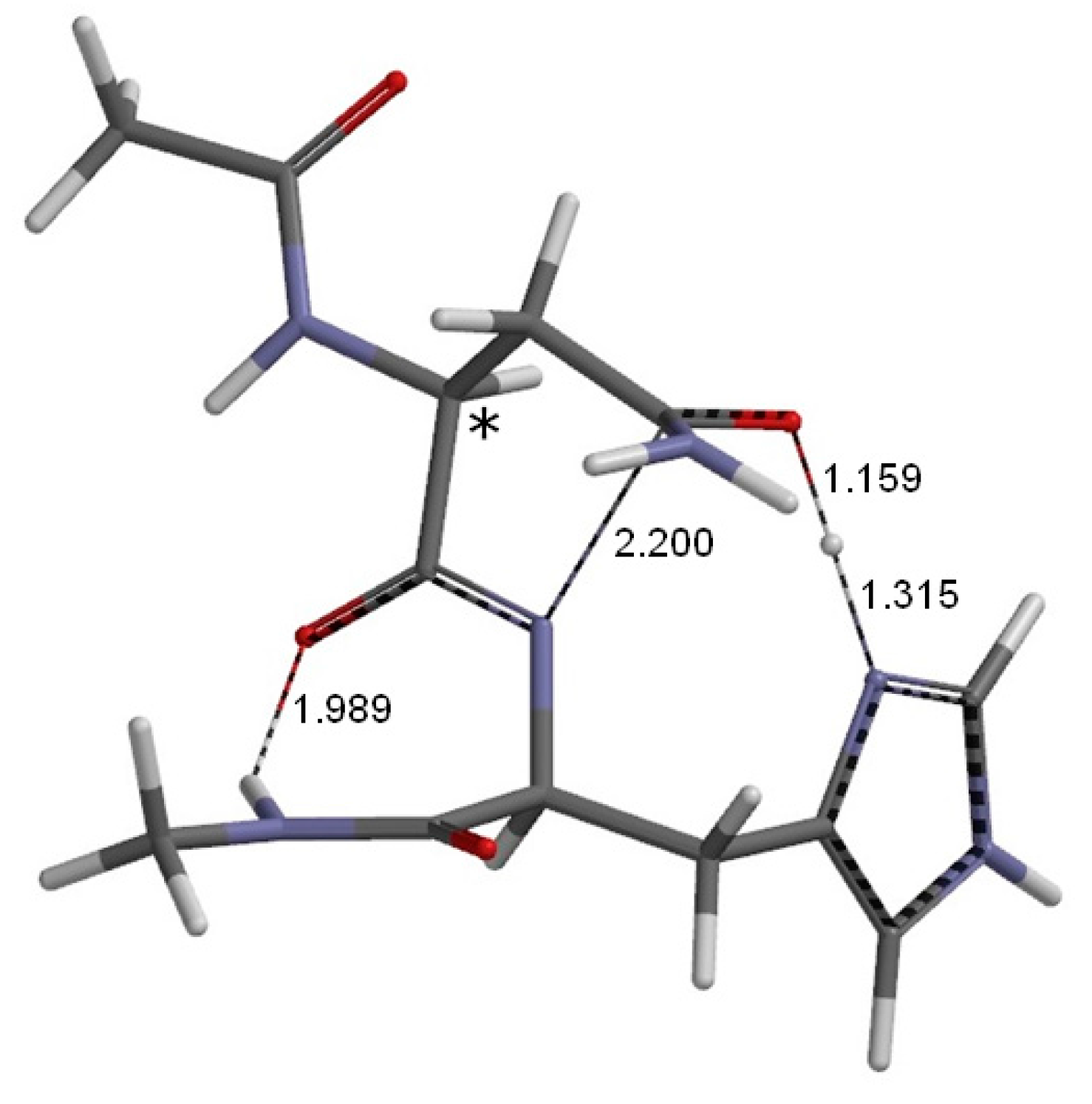 - Takahashi, O.; Kobayashi, K.; Oda, A. Modeling the enolization of succinimide derivatives, a key step of racemization of aspartic acid residues: Importance of a two-H2O mechanism. Chem. Biodiv. 2010, 7, 1349–1356. [Google Scholar] [CrossRef] [PubMed]