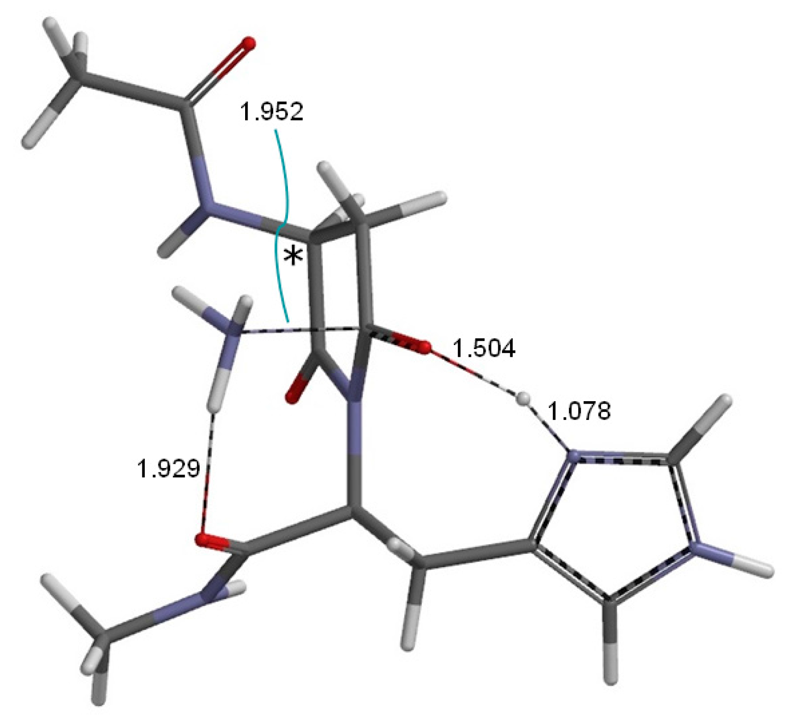 - Takahashi, O.; Kirikoshi, R.; Manabe, N. Acetic acid can catalyze succinimide formation from aspartic acid residues by a concerted bond reorganization mechanism: A computational study. Int. J. Mol. Sci. 2015, 16, 1613–1626. [Google Scholar] [CrossRef] [PubMed]