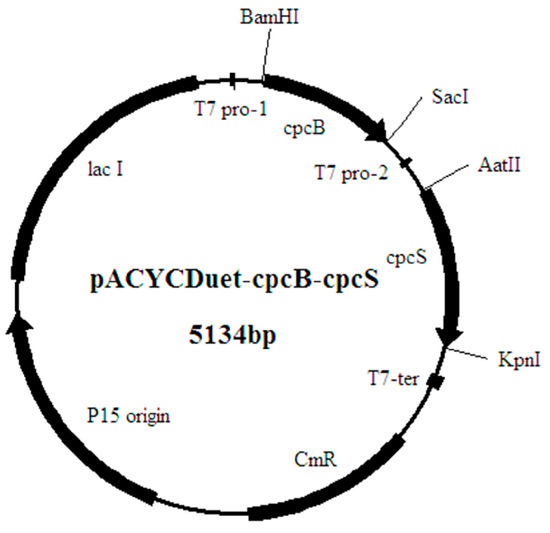 | pACYCDuet-cpcB | Our laboratory | Expression the β-PC |