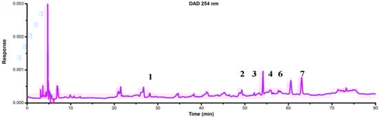 DAD (254 nm) chromatograms of flavonoid extract from M. polymorpha L. gametophyte.