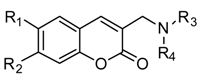 Limited structural modifications were investigated at positions 6 and 7 of the coumarin backbone with the introduction of methoxy groups. On the other side, a higher diversity was explored in the flexible basic moiety where hydrophilic hydrogen-bonding, propargyl and bulkier benzylic groups were inserted. Since cation-π interactions stabilize the complexes of AChE with natural substrate (ACh) and positively-charged inhibitors (e.g., quaternary ammonium salts) at the level of both binding sites (PAS and CAS), a methylene spacer linked the amino group to the heterocyclic scaffold in order to obtain a protonatable base. A ligand-based approach inspired the introduction of propargylamines, a typical structural feature of potent and irreversible MAO-B inhibitors rasagiline [19] and selegiline.