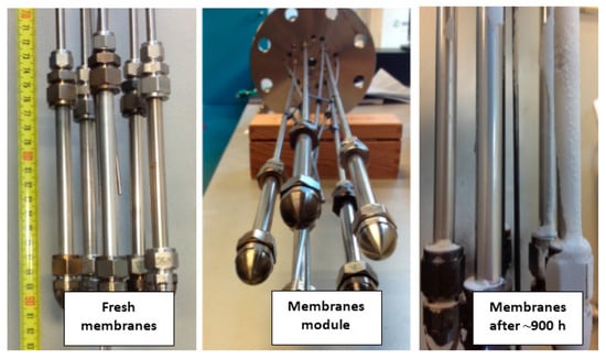 Five Pd-Ag alloy membranes (4–5 µm of selective layer thickness, 13%–15% Ag) were prepared onto ceramic supports provided by Rauschert Kloster Veilsdorf (alumina 100 nm pore size top layer, 10/7 mm outer diameter/inner diameter). The membranes were sealed following a sealing technique reported by Fernandez et al. [19]. After sealing, each membrane had an average net length of 10 cm.