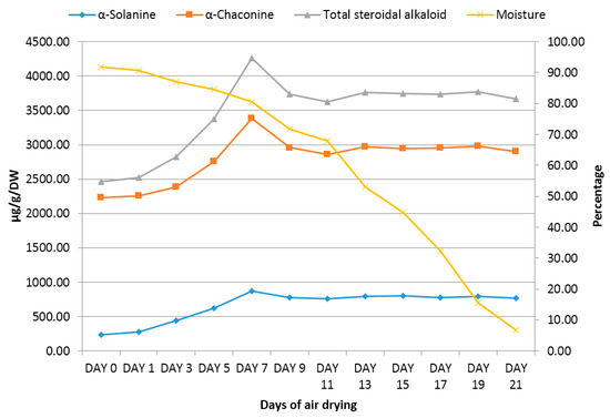 2.2. Changes in Steroidal Alkaloid Content during Air Drying of Potato Shoots