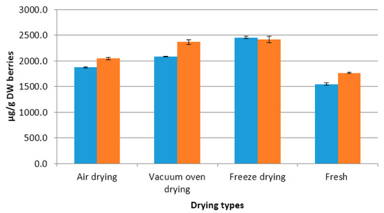 - Hossain, M.B.; Barry-Ryan, C.; Martin-Diana, A.B.; Brunton, N.P. Effect of drying method on the antioxidant capacity of six Lamiaceae herbs. Food Chem. 2010, 123, 85–91. [Google Scholar] [CrossRef]