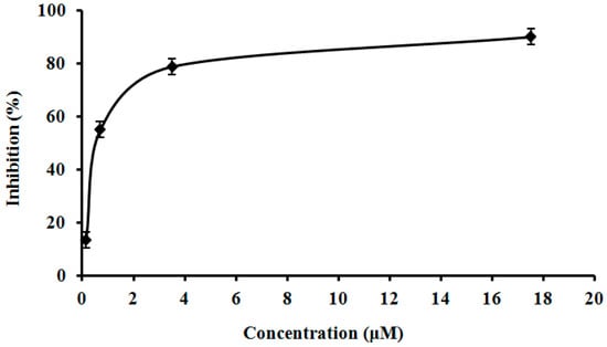 The isolated L. nuda laccase was tested for this activity since some mushroom proteins demonstrated this activity [31,34]. The inhibitory activity of L. nuda laccase toward HIV-1 reverse transcriptase was dose-dependent. The IC50 was 0.65 μM which was apparently lower than that of Agrocybe cylindracea laccase [32], indicating that L. nuda laccase had higher HIV-1 reverse transcriptase inhibitory activity than A. cylindracea laccase (Figure 6).