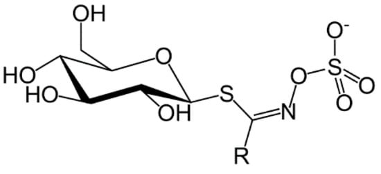 Structure of glucosinolates, where R is the variable side chain from amino acids [].