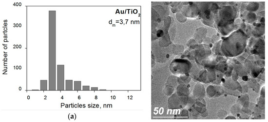- Akita, T.; Lu, P.; Ichikawa, S.; Tanaka, K.; Haruta, M. Analytical TEM study on the dispersion of Au nanoparticles in Au/TiO2 catalyst prepared under various temperatures. Surf. Interface Anal. 2001, 31, 73–78. [Google Scholar] [CrossRef]