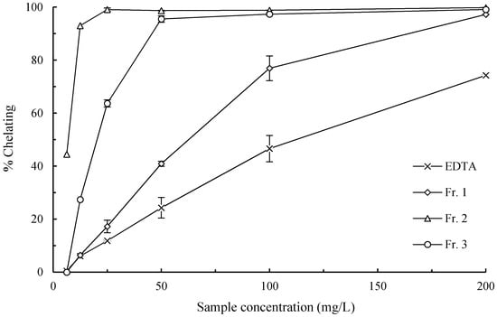 Dose-dependent metal chelating ability of pigment fractions from chestnut shell.
