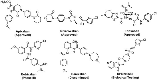 - Lee, Y.K.; Player, M.R. Developments in factor Xa inhibitors for the treatment of thromboembolic disorders. Med. Res. Rev. 2011, 31, 202–283. [Google Scholar] [CrossRef] [PubMed]
