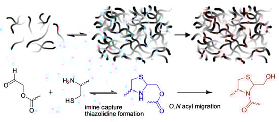 As an extension of this work, Grinstaff and co-workers employed pseudoproline formation toward the construction of these hydrogels to accelerate the crosslinking and to prolong their shape stability [