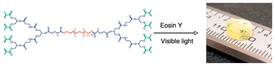 36]. Methacrylate functionalities at the dendron periphery allowed biocompatible photo-crosslinking with the eosin-Y-based photo-initiation system (