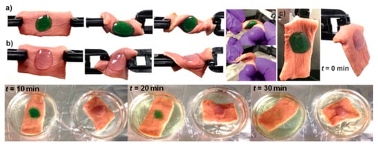 24]. They obtained tunable mechanical properties by changing the polymer and gelation concentrations. The degradation times of hydrogels prepared by P-Ald PEG, B-Ald PEG and E-Ald PEG were six days, 1.5 and 24 weeks, respectively. The best adhesive behavior was obtained with B-Ald hydrogel on an enucleated eye model. This study highlighted that materials with a wide range of mechanical properties and degradation times and sufficient adhesiveness can be prepared, and these hydrogels would be useful as wound-healing scaffolds for applications requiring different healing times.