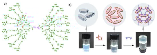 57]. They prepared the DLDs using a linear PEG segment and G1, G2 and G3 polyester dendrons displaying guanidinium ions. Clay nanosheets were dispersed using sodium polyacrylate prior to the hydrogel formation (