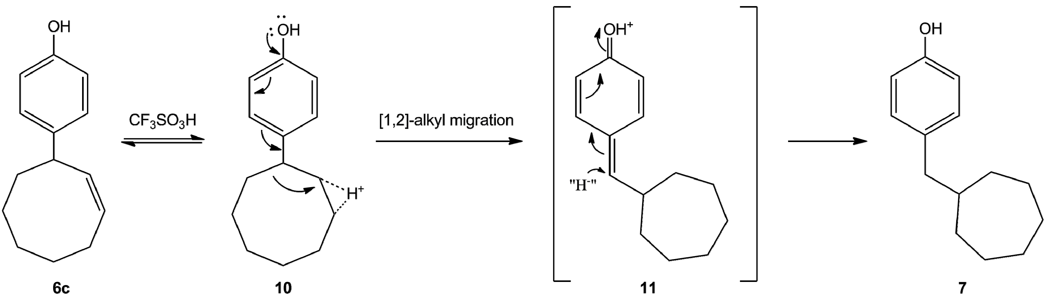 The acid-catalyzed reaction of 2-cyclooctanylphenol 4f represents an unexpected twist. After the Cope rearrangement, a migration of the alkyl group took place and as a result of this ring contraction reaction we could isolate 4-cyclohepthylmethylphenol (7).