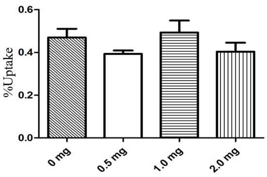 The stability of the complexes was assayed by measuring the radiochemical purity by HPLC (High Performance Liquid Chromatography). The complex was stable over 6 h in the reaction mixture at room temperature (HPLC chromatograms can be found in the Supplementary Materials Figure S1). Only a little decomposition of the complexes was observed in the mouse serum at 37 °C for 6 h (HPLC chromatograms can be found in the Supplementary Materials Figure S2), suggesting that they had good in vitro stability.